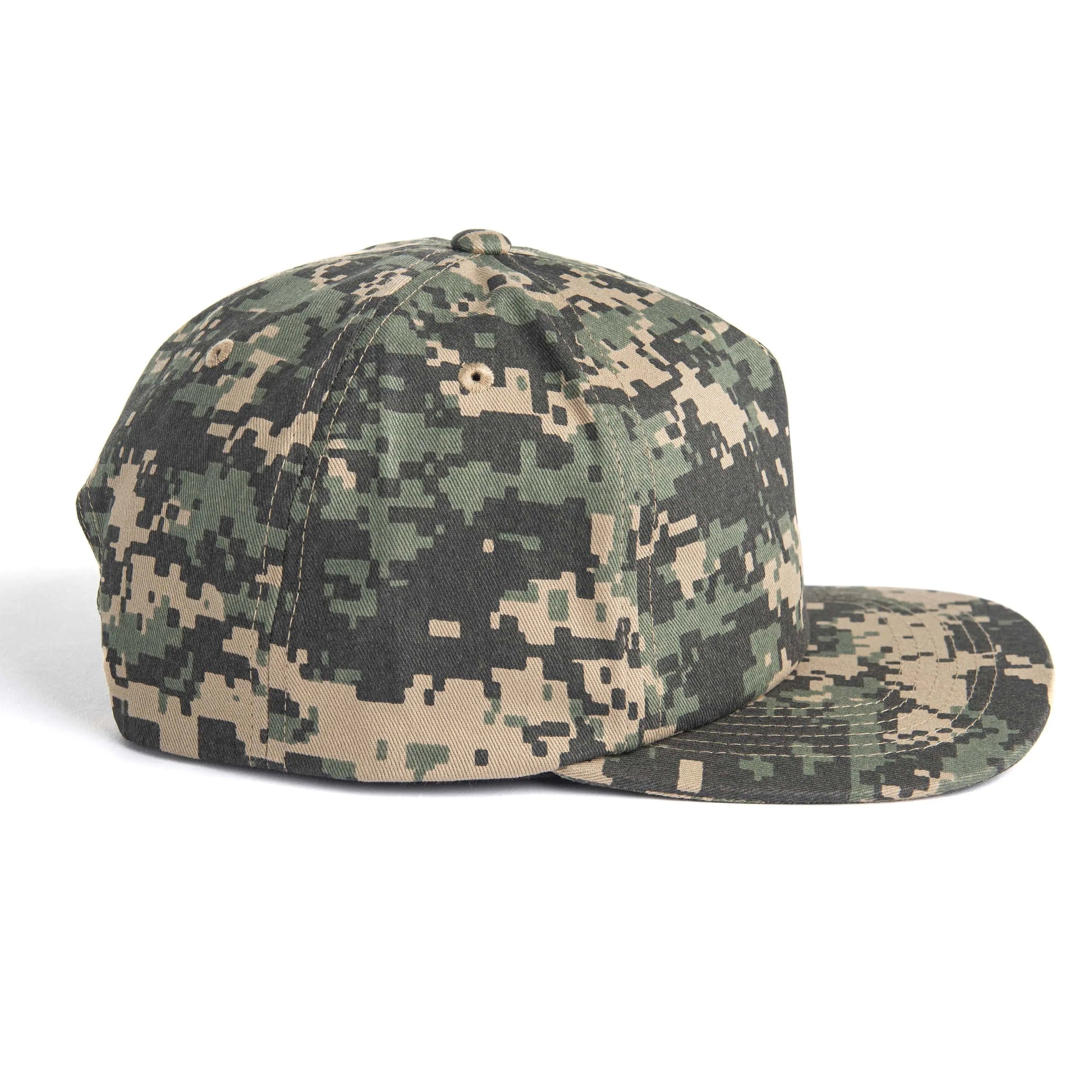 A high-quality 5-panel snapback featuring Oeko-Tex Standard 100 certified cotton fabric and a visor peak crafted from Scope Certified recycled materials. Universally sized for a comfortable fit.